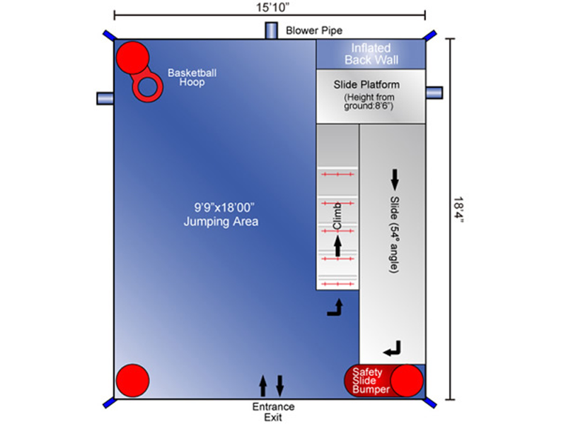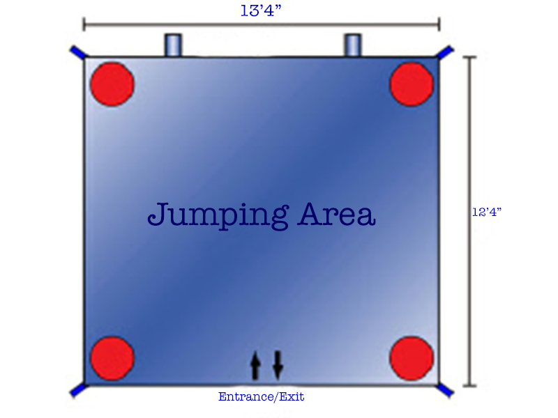 Most of our bounce houses are 15' x 15' or 18' x 15' and require a three-foot "safety space" on all sides.