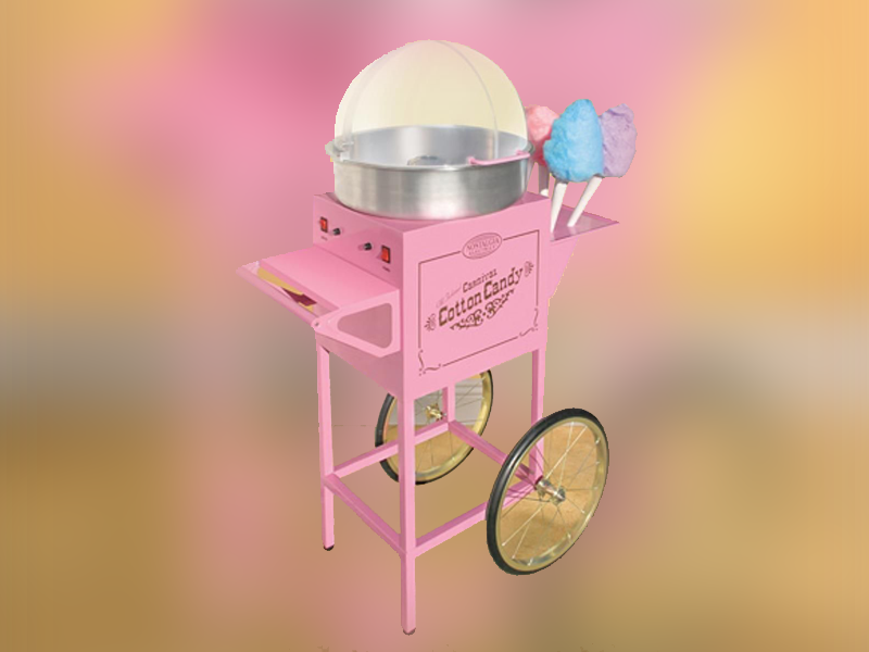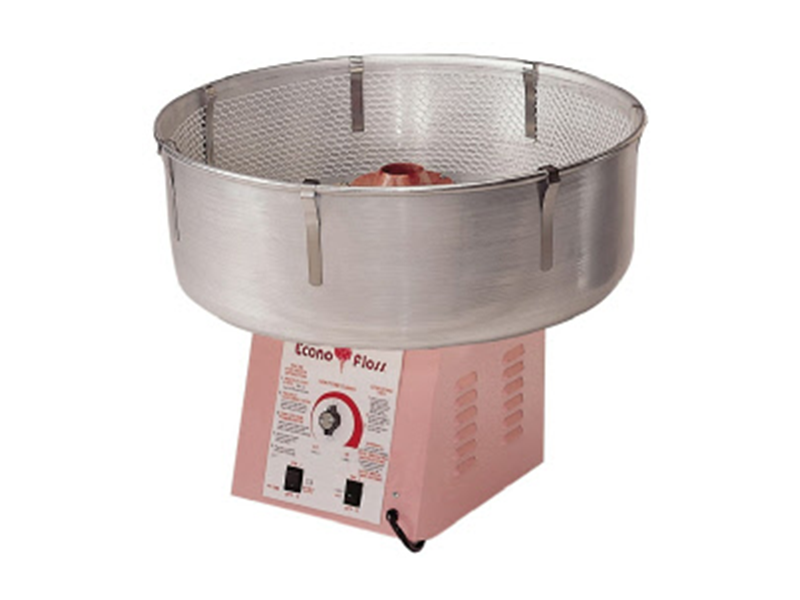 Full-size cotton-candy machine that makes a fluffy batch in under a minute. Features anti-vibration operation, hydraulic spinning head, and separate heat and motor switches.